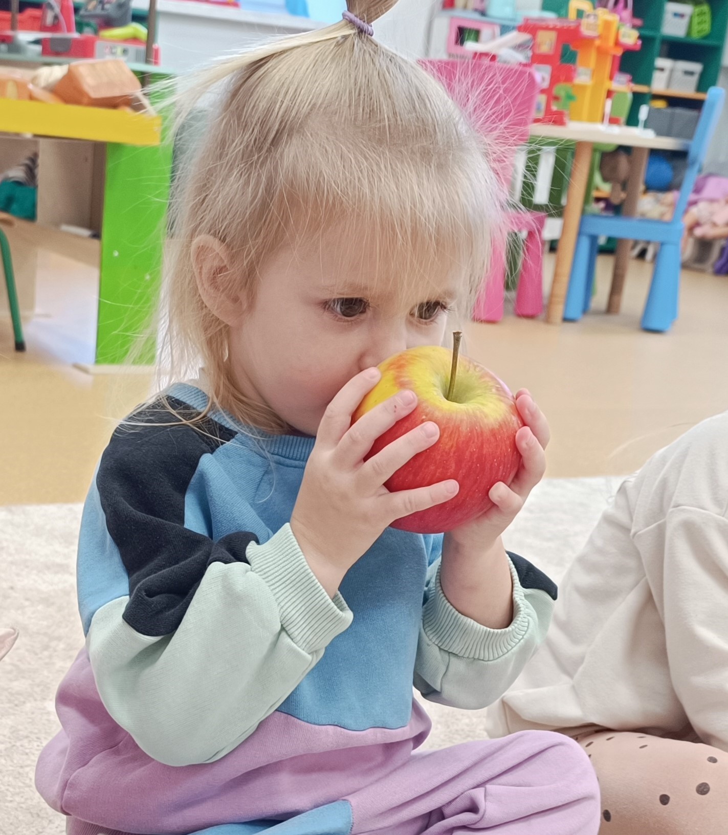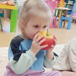 To był dzień pełen spontanicznej, dziecięcej radości inspirowanej tym popularnym owocem. Przez zabawę maluchy poznawały nie tylko jabłka, ale i siebie nawzajem – ucząc się współpracy, dzielenia i uważnego słuchania. To była iście owocowa przygoda!