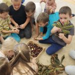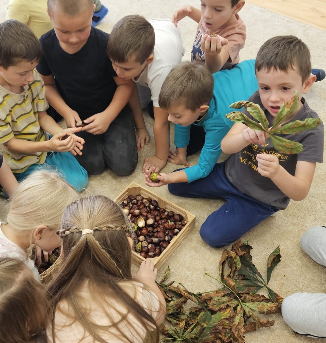 W poniedziałek – 6 października, PSZCZÓŁKI świętowały radośnie Dzień Kasztana. Tego dnia w sali panował prawdziwie jesienny klimat – wspólna przestrzeń wypełniona była darami jesieni – zebranymi wcześniej przez dzieci. Przedszkolaki uczestniczyły w różnych zabawach, których głównym bohaterem był… kasztan! Wysłuchały bajki terapeutycznej: „Kolczasty Przyjaciel”, przesłaniem której było, że nikogo nie należy oceniać po wyglądzie, gdyż prawdziwa przyjaźń i dobro często kryją się pod kolczastym „płaszczykiem”. Dzieci dowiedziały się także wielu ciekawostek o kasztanach i ich roli w przyrodzie. Uczestniczyły w różnorodnych aktywnościach, które nie tylko sprawiały im wiele radości, ale także wspierały ich rozwój. Przedszkolaki rozwijały umiejętności matematyczne, motorykę małą, ćwiczyły logiczne myślenie, słuch fonematyczny. Ponadto stworzyły jesienną „kasztanową orkiestrę”, która wesoło rozbrzmiewała w całej sali.