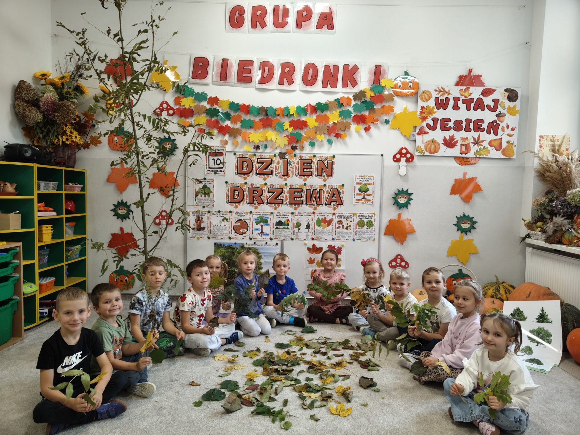 10 października obchodzony jest Światowy Dzień Drzewa.  Z tej okazji w grupie „Biedronki” odbyły się zajęcia poświęcone drzewom. Dzieci zapoznały się z budową drzewa, poznały różne gatunki drzew, ich nazwy oraz wygląd. Dowiedziały się skąd biorą się drzewa i dlaczego pełnią tak ważną rolę. Po teoretycznym zapoznaniu z tematem dzieci rozwijały kompetencje matematyczne przeliczając drzewa na obrazkach, nie zabrakło także zabaw z darami jesieni, z których dzieci wspólnie ułożyły sylwetę drzewa na dywanie. Jak wiadomo wszystkim, drzewa, jako największe rośliny najskuteczniej produkują tlen w atmosferze. Są miłe dla oka, oczyszczają powietrze, chronią przed palącym słońcem w upalny dzień, dają materiał na budowę domu i smaczne owoce. Nie sposób opisać wszystkich funkcji, które pełnią drzewa i lasy. Nie sposób wycenić ich znaczenia dla naszej Planety, każdego organizmu, w tym dla człowieka i rozwoju jego cywilizacji. Drzewa to… życie! Dlatego bardzo ważną rolą człowieka jest ochrona lasów, sadzenie nowych drzew i dbanie o ekosystem.