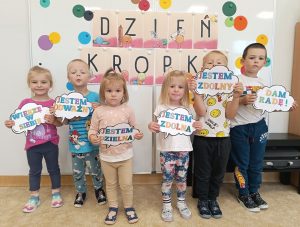 Jedna mała kropka, a w naszym przedszkolu wywołała… eksplozję kreatywności, wyobraźni i odwagi! A wszystko to za sprawą obchodzonego 15 września Międzynarodowego Dnia Kropki, czyli święta odkrywania swoich talentów i wiary w to, że w każdym z nas drzemie coś wyjątkowego – tylko trzeba uwierzyć w siebie i dać sobie szansę. Jest to zatem doskonała okoliczność do podejmowania tematycznych aktywności, czego podjęły się grupy ZAJĄCZKI, KOTKI, SMERFIKI i BIEDRONKI.